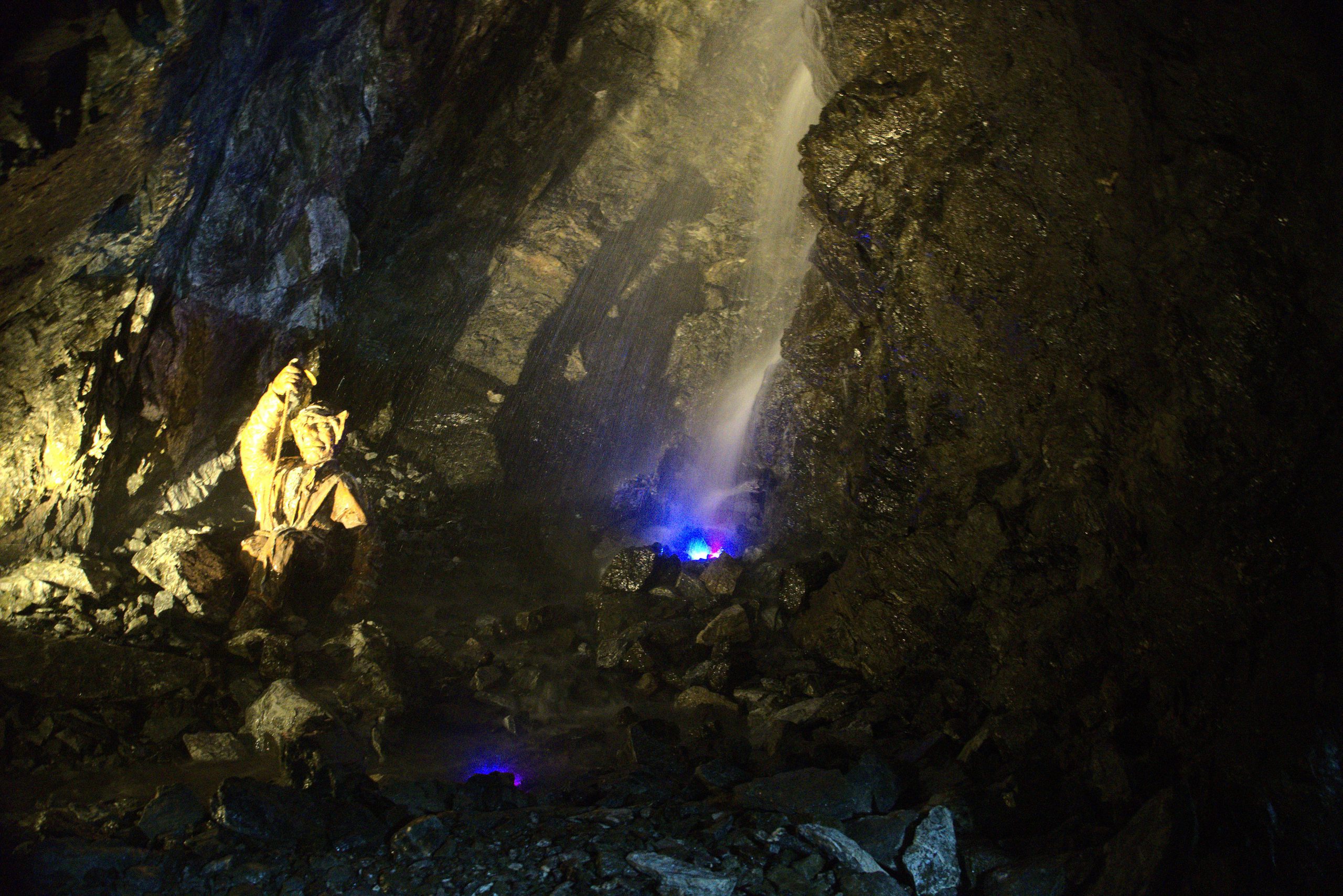 Możliwa jest też przejażdżka pomarańczową kolejką, której lokomotywa nazywa się „Gacek” (a przynajmniej my na tę właśnie trafiliśmy). Trasa przejazdu liczy ok. 300 m. W tej części muzeum można także zobaczyć przepiękny podziemny wodospad.