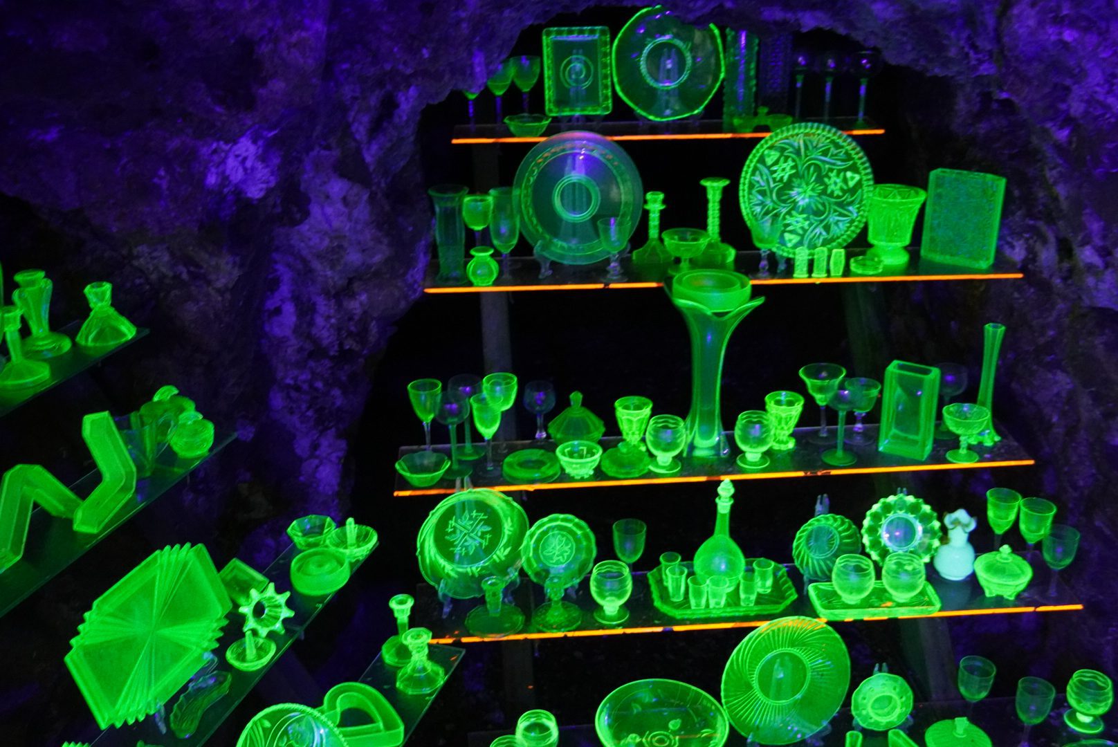 Niezwykle interesująca jest kolekcja szkła uranowego, które w świetle UV ma niesamowity odcień zielonego. Największe wrażenie robi jednak przyłożenie licznika Geigera do maleńkiej bryłki blendy uranowej. Po chwili odczyty przekraczają normę 50 razy, co pokazuje, że choć dziś jest to miejsce turystyczne, kiedyś faktycznie pozyskiwano tu tak pożądane paliwo jądrowe.