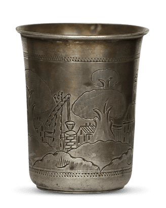naczynie na wino, używane przez Żydów do celów rytualnych z okazji szabatu i świąt. Pan domu odmawia kidusz (błogosławieństwo) nad pucharem napełnionym winem. Na wschodzie Europy w XIX w. do najbardziej powszechnych należały srebrne lub platerowane kubeczki różnych rozmiarów, na których ornament roślinno-geometryczny przeplatał się z wygrawerowanymi widokami architektonicznymi.