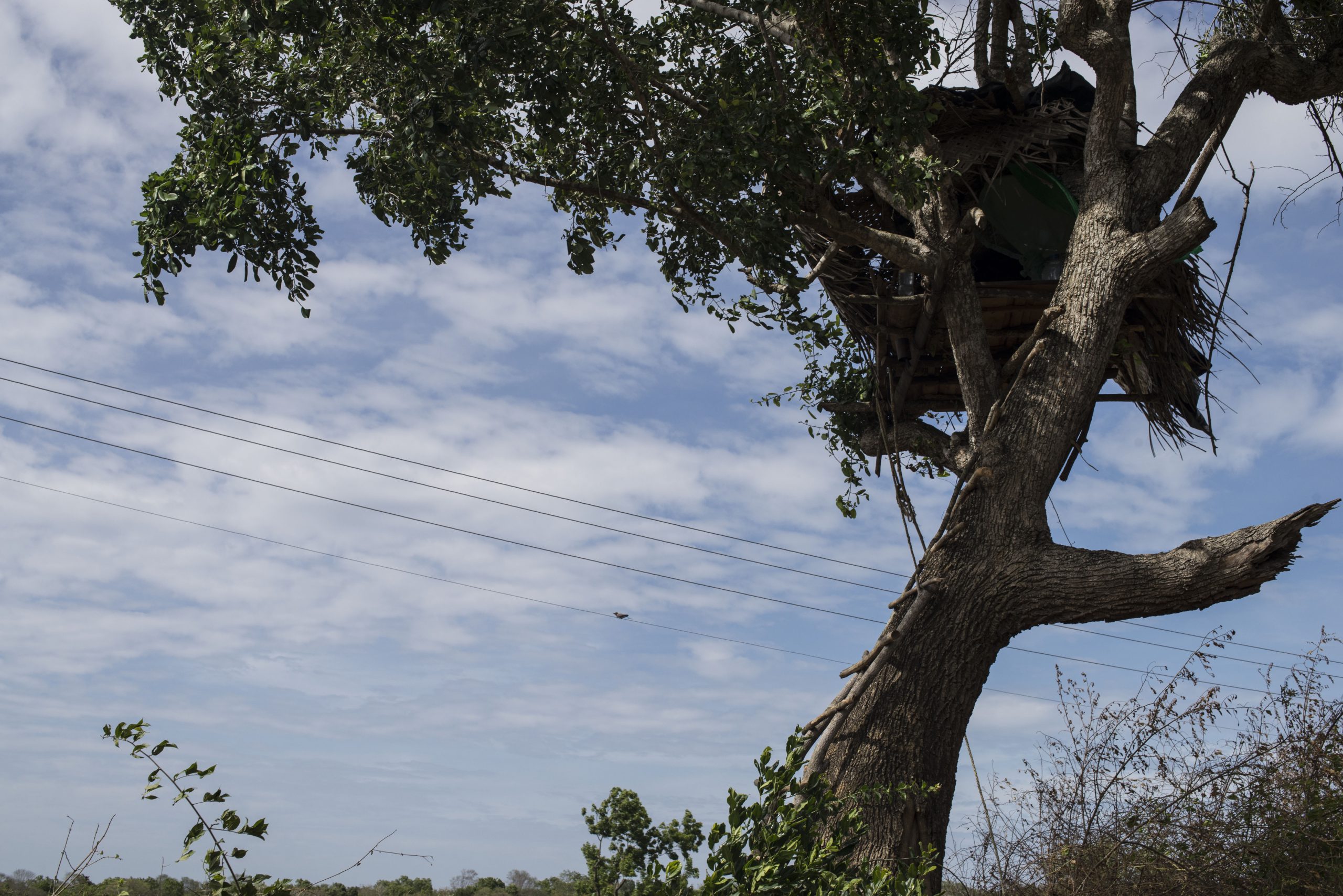 Chaty na drzewach od dawna służyły do monitorowania upraw w Sri Lance. W dzisiejszych czasach tak starą praktykę, jak wspólna ochrona plonów za pomocą obserwacji pól uprawnych z konarów drzew, mieszkańcy łączą z nowoczesnymi sposobami ostrzegania się przed słoniami. Premadasa pokazuje tymczasowe ogrodzenia elektryczne pól ryżowych, których używa, obserwując jednocześnie wydarzenia z chatki zbudowanej na drzewie. Ogrodzenia są podłączone do paneli słonecznych i działają tylko w trakcie sezonu uprawowego. W ten sposób mieszkańcy zapobiegają niszczeniu plonów przez słonie. Po żniwach płot jest rozbierany, a resztki ryżu zostawia się zwierzętom. Dzięki temu słonie i ludzie mogą pokojowo współistnieć i nikt nikogo nie krzywdzi.