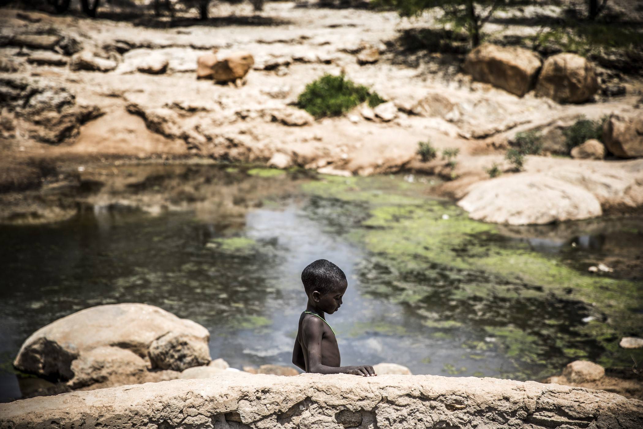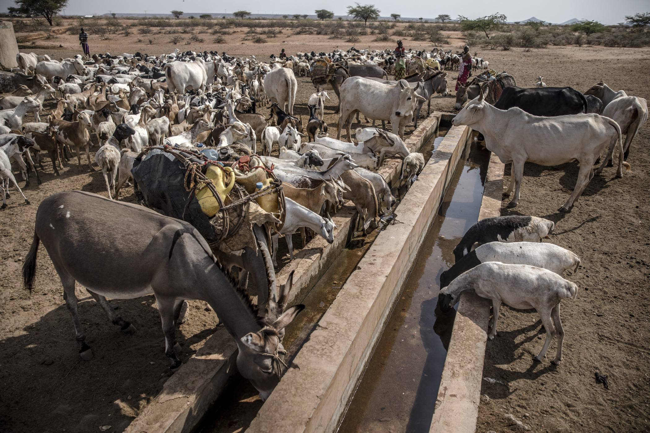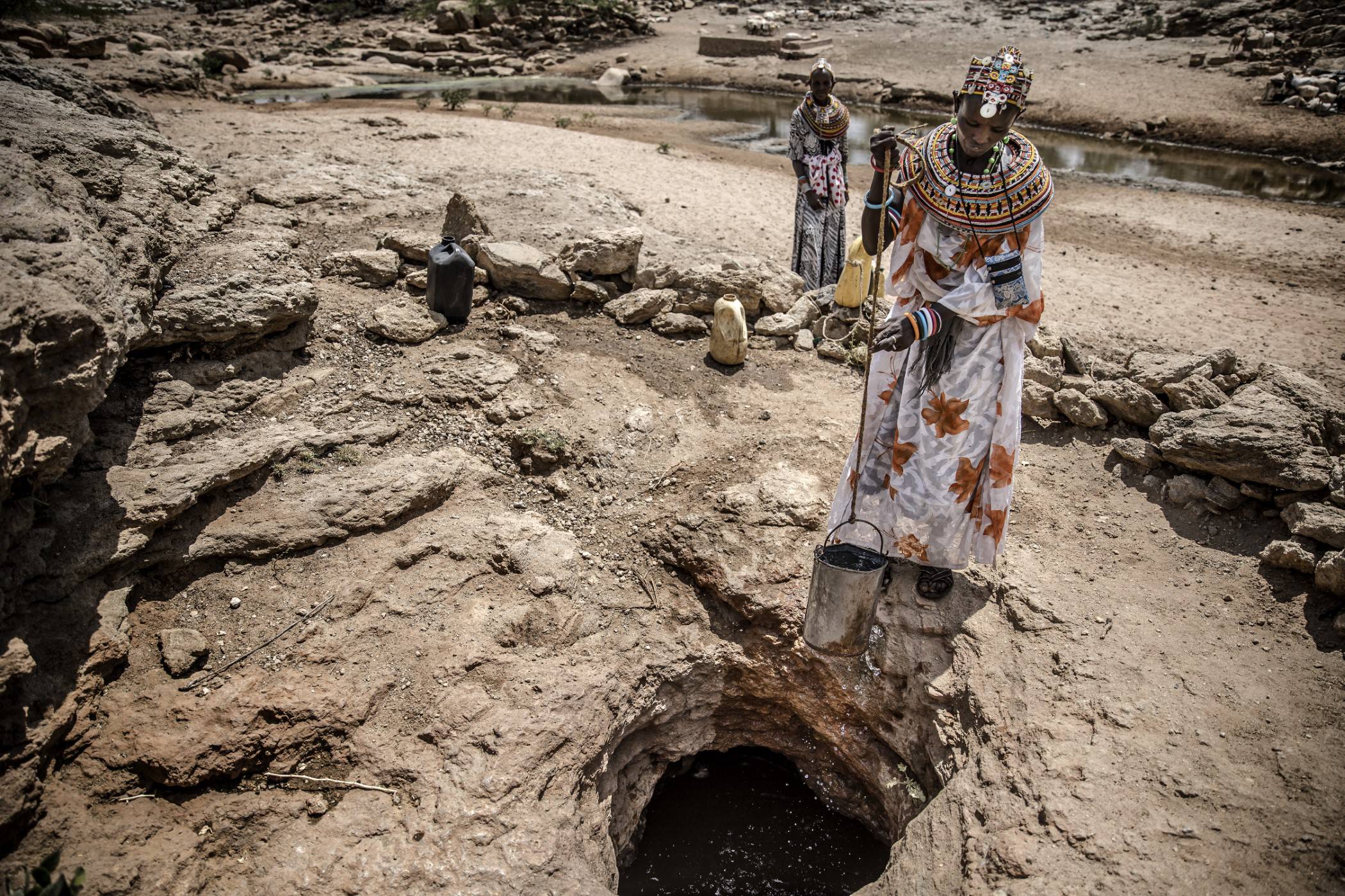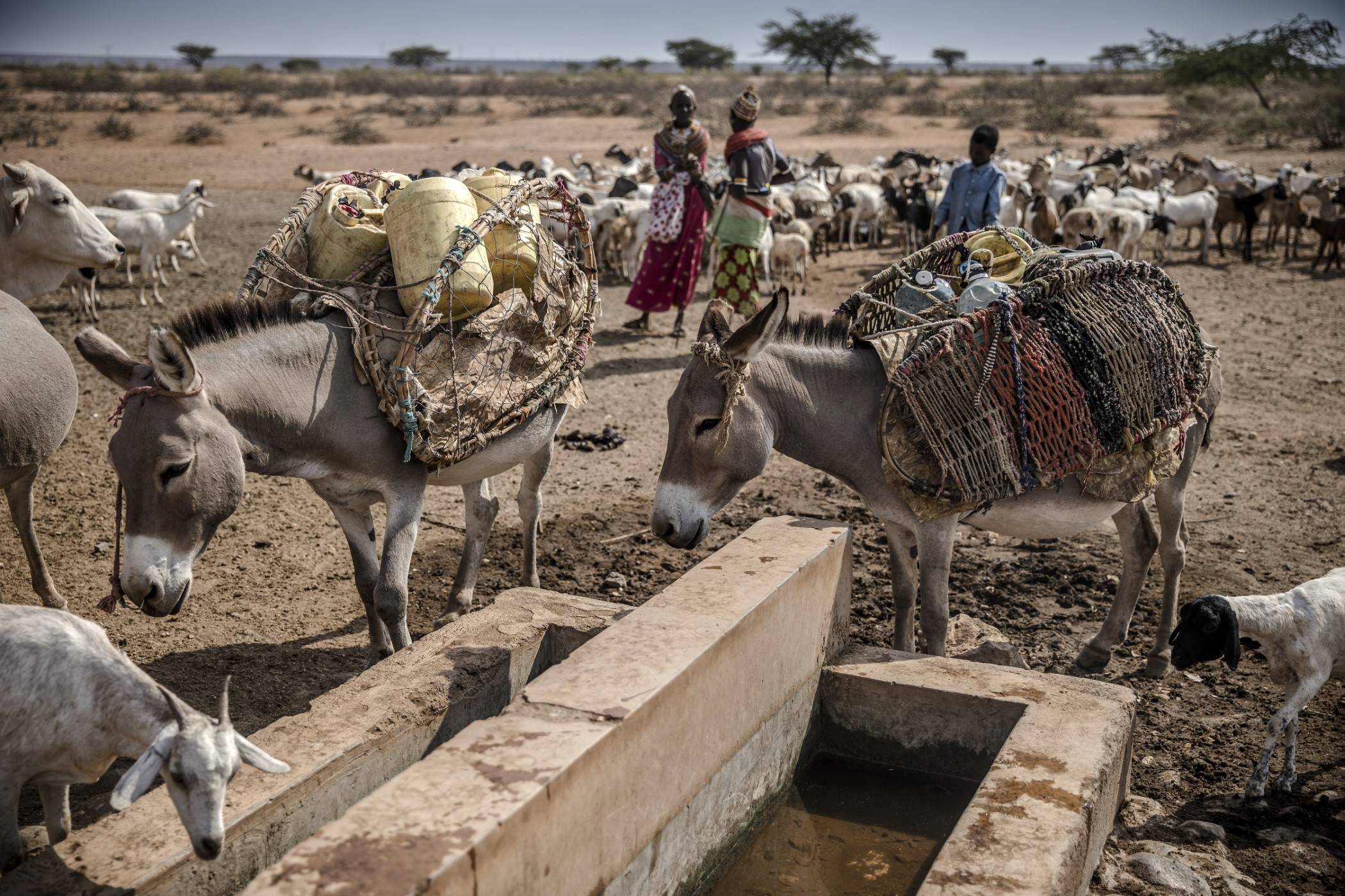 Mężczyźni, kobiety i dzieci przyszli tu ze swoimi zwierzętami, aby je napoić. Osły przenoszą kanistry z wodą do użytku domowego. Niektórzy biorą prysznic, podczas gdy zwierzęta zaspokajają pragnienie.