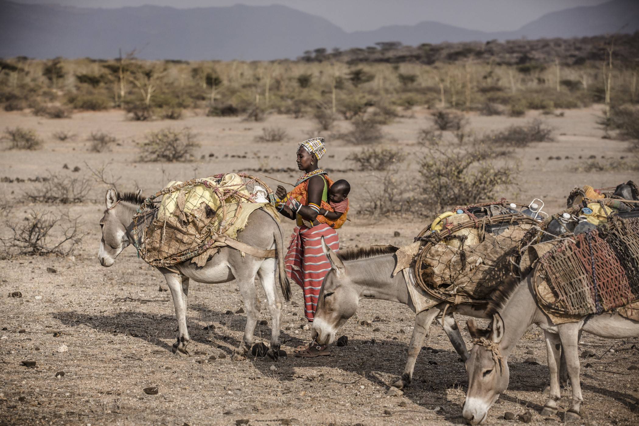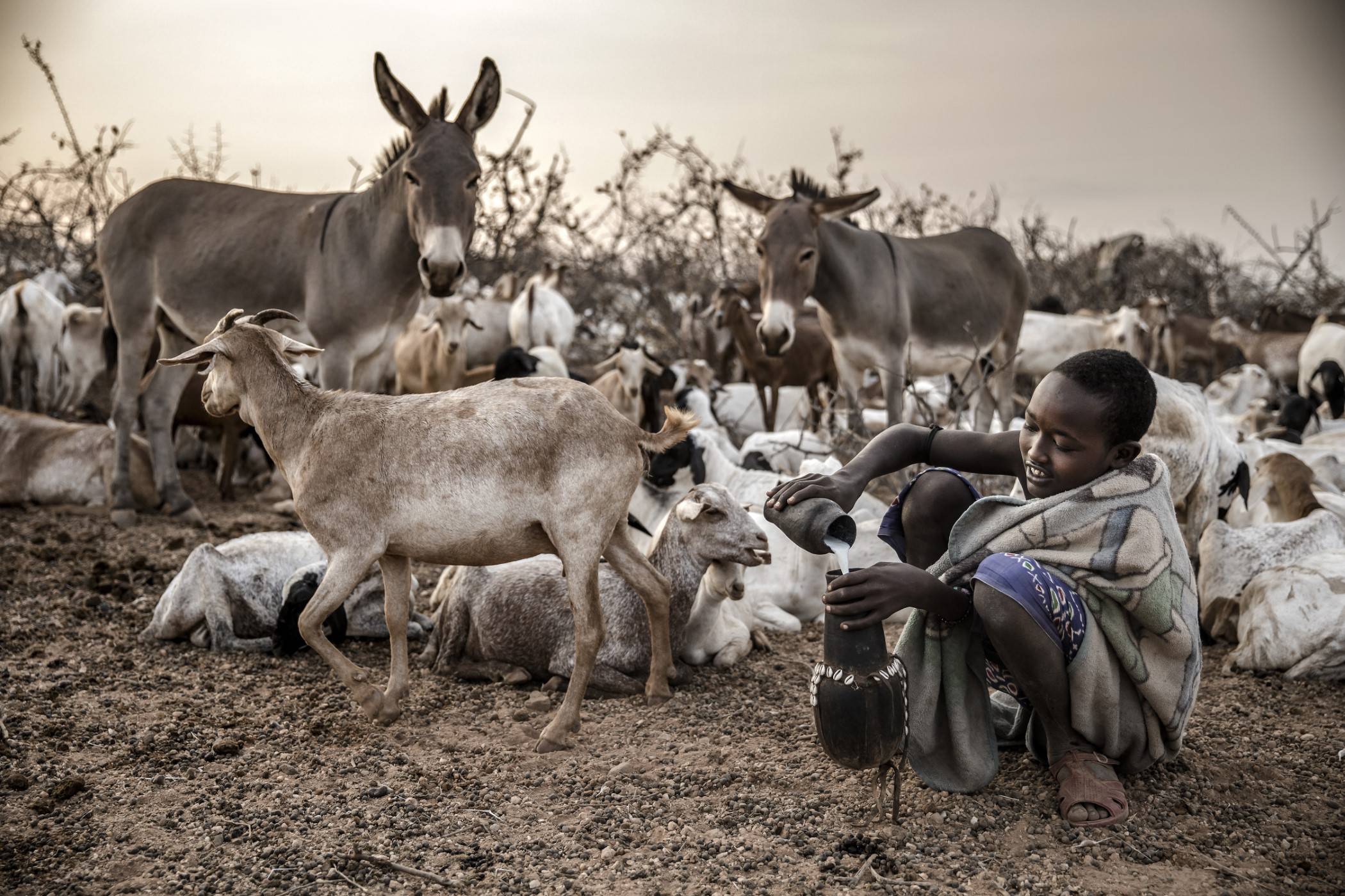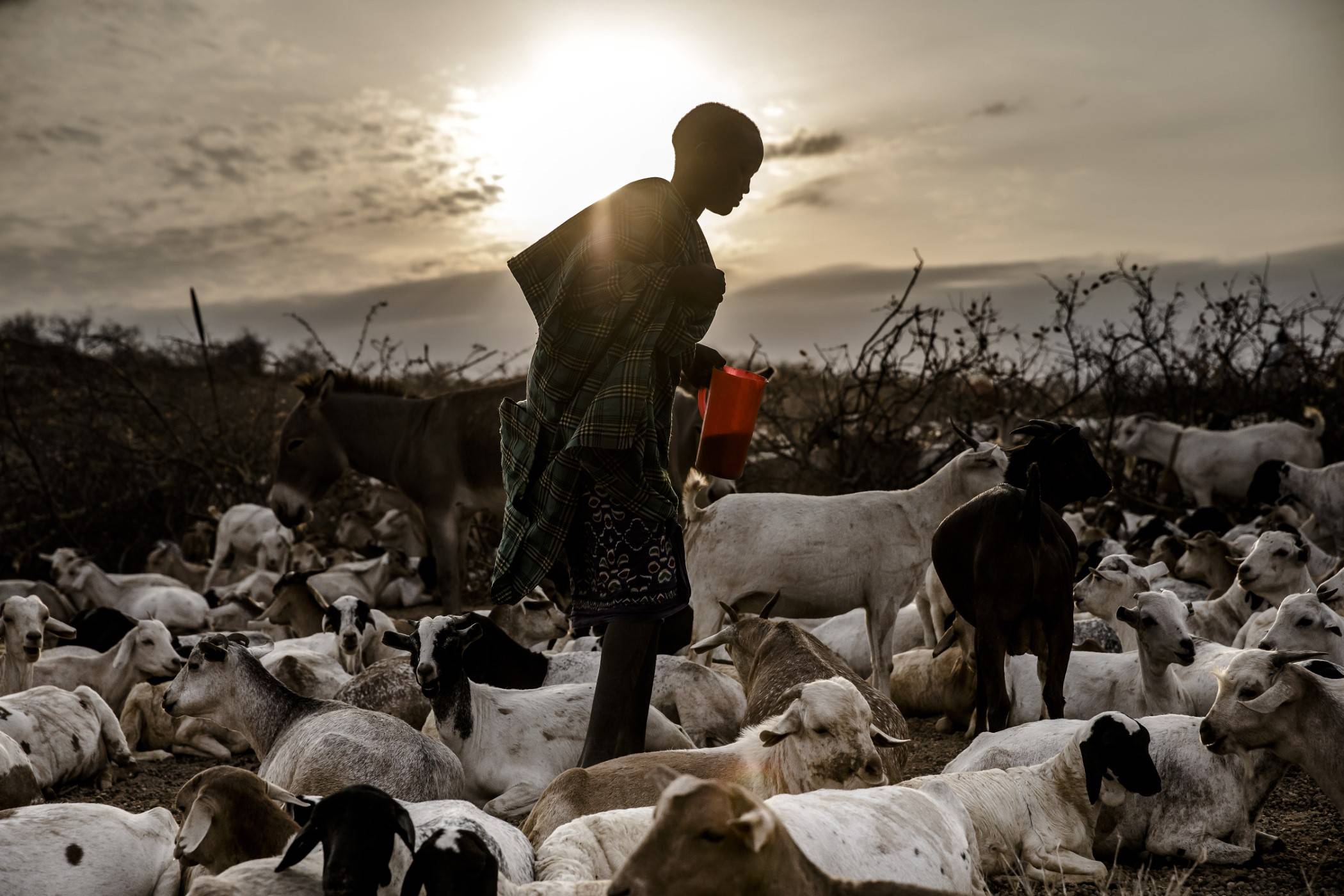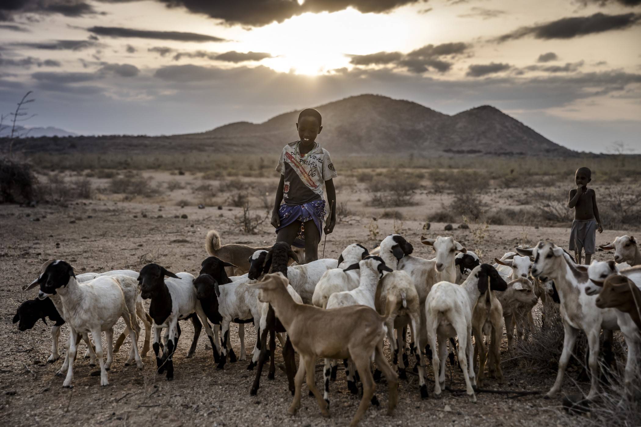 Najmłodsze dzieciaki, w wieku pięciu i siedmiu lat, zabierają wielbłądy na pastwisko niedaleko obozu. Misito wraz z Lejerinem prowadzą bydło do zasilanego energią słoneczną wodopoju w Sagardali, oddalonej o prawie 5 km. Zabierają ze sobą osły, które będą transportować wodę do użytku domowego. Peari musi pokonać najdłuższy dystans ze wszystkich. Nastolatek ma pod opieką 55 kóz i owiec i udaje się po wodę do oddalonej o prawie 15 km rzeki Laisamis.