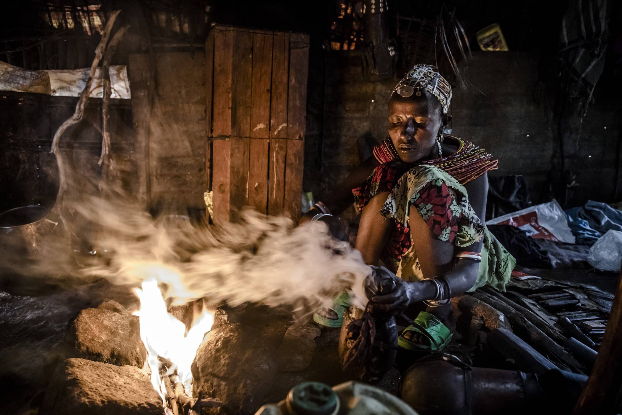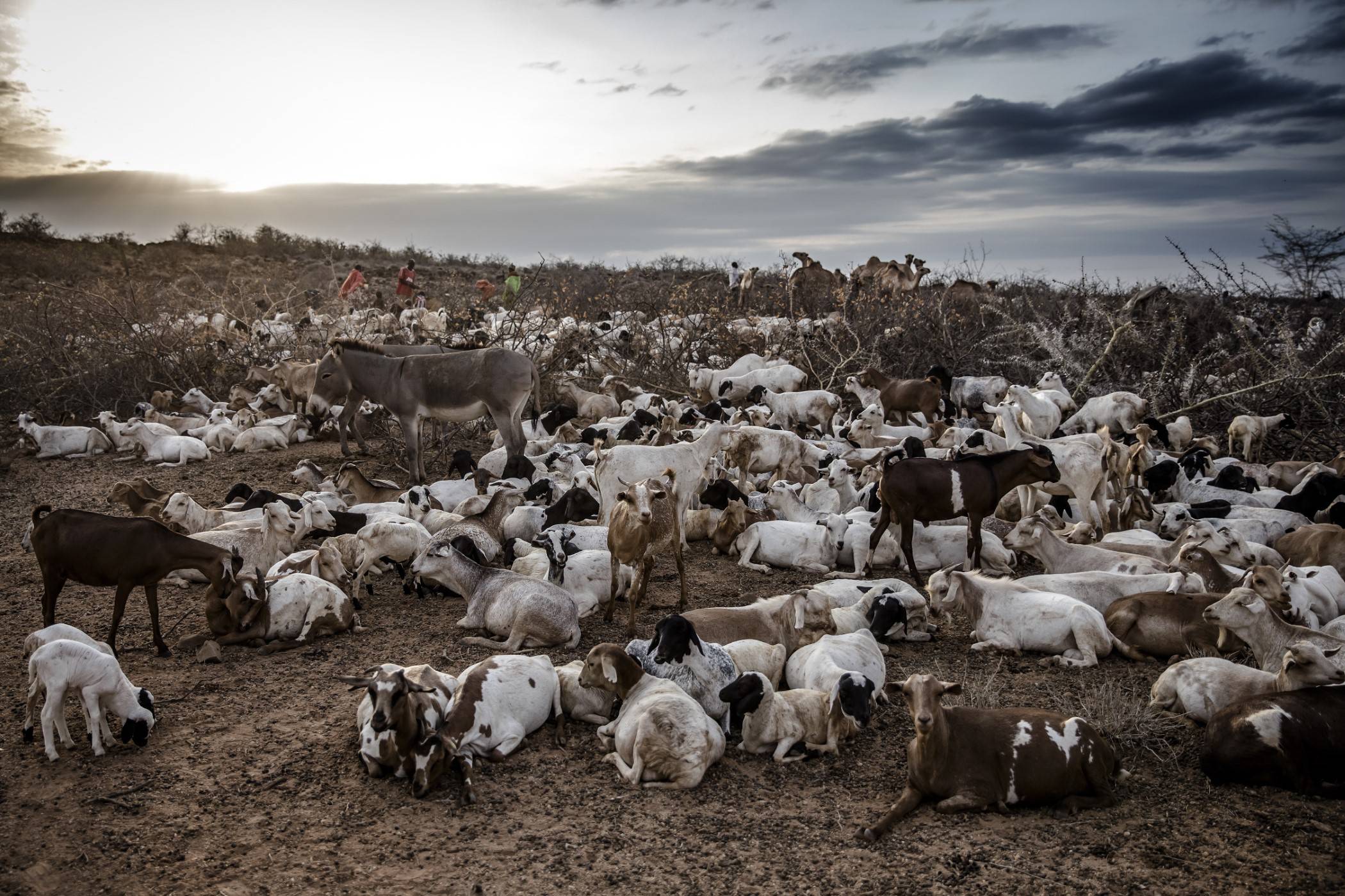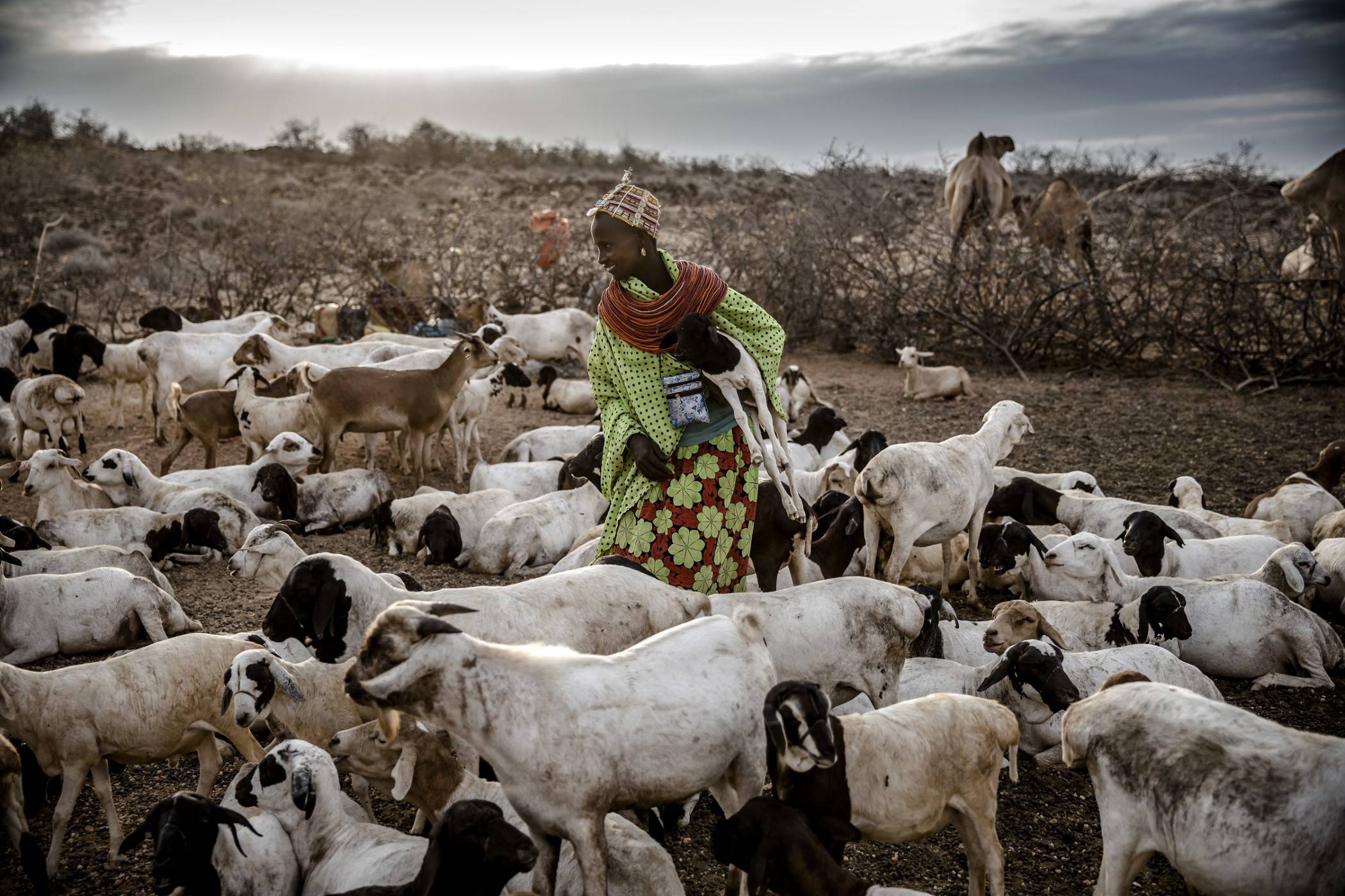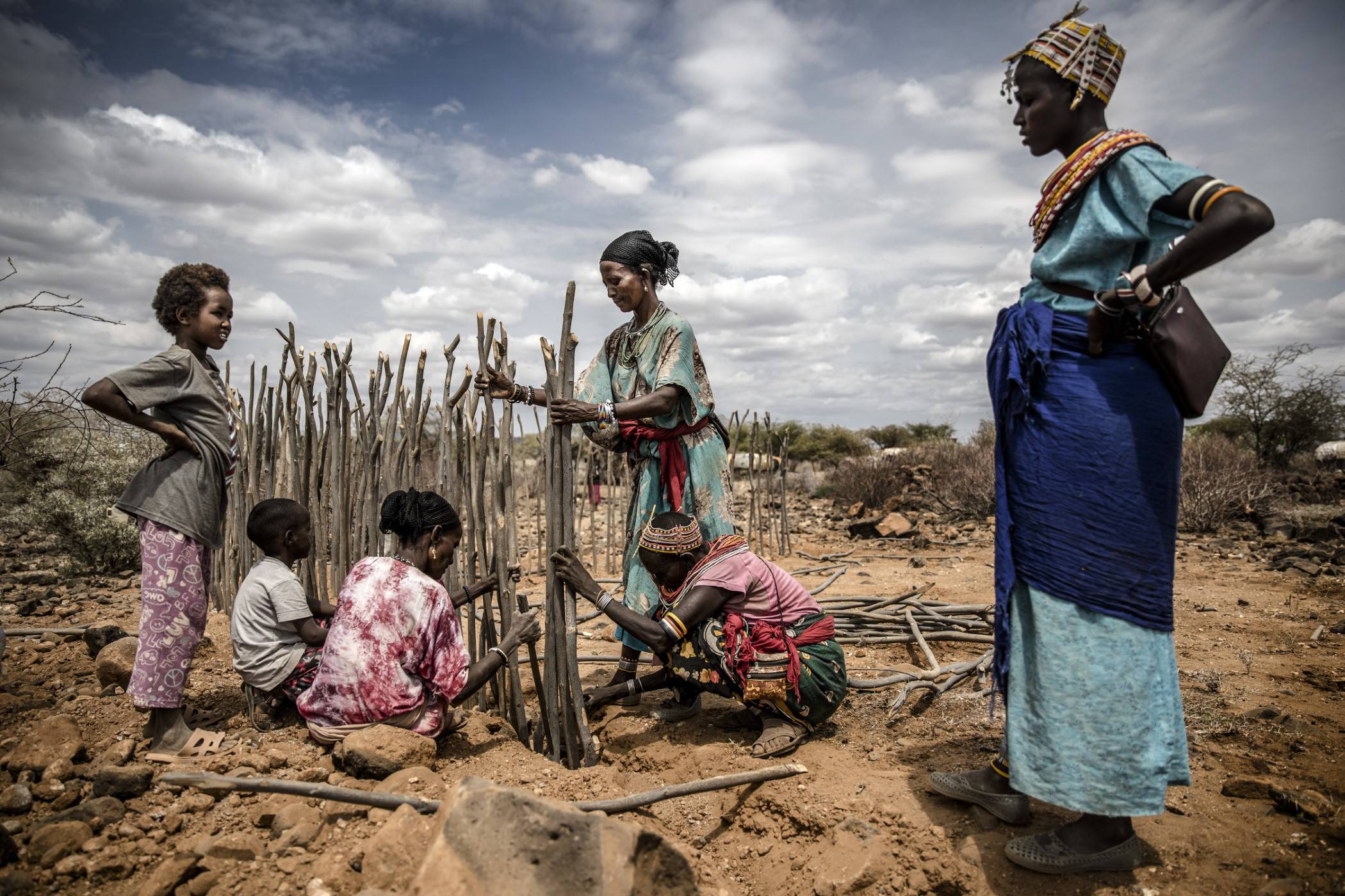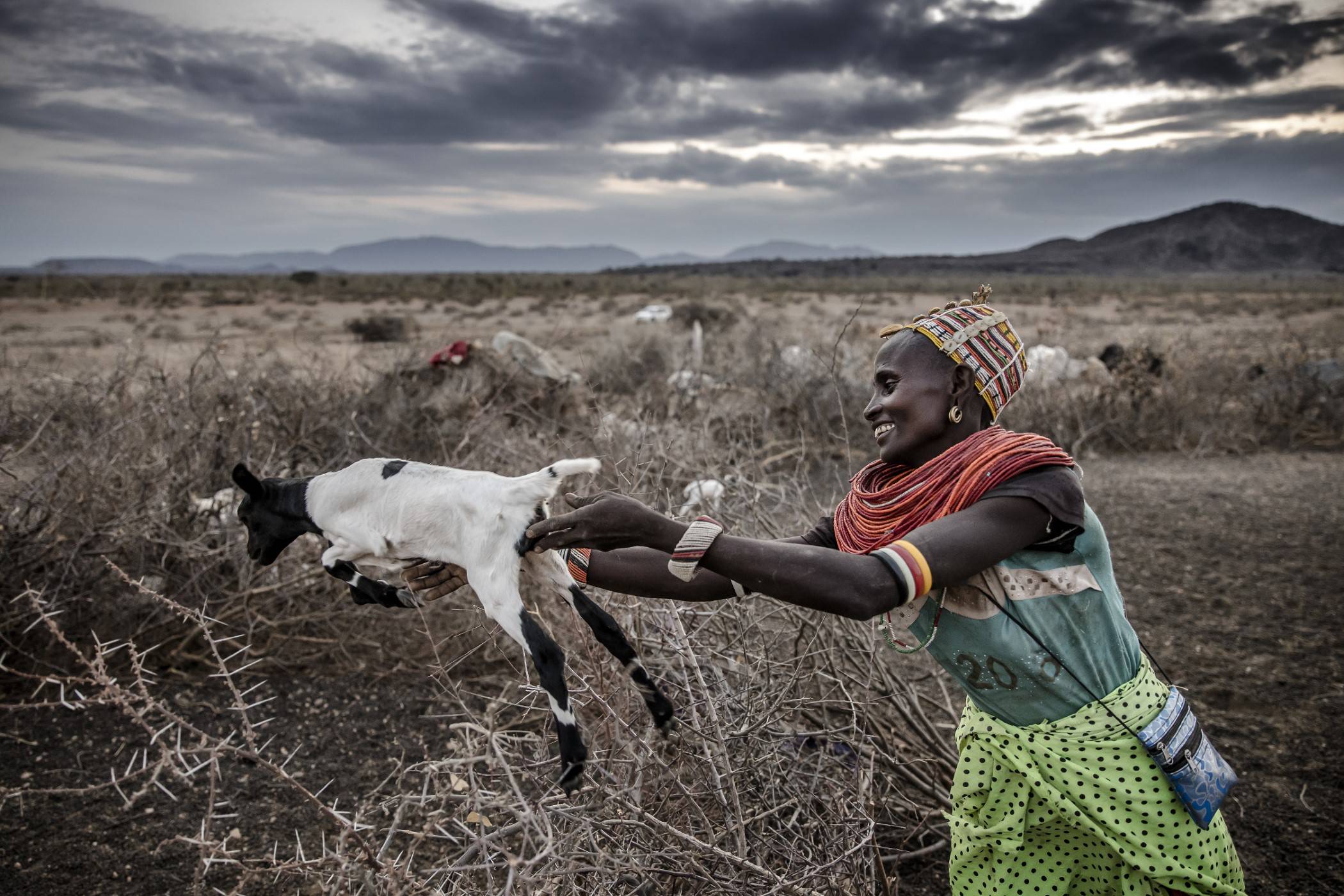 Kozy wskakują na pobliskie drzewa i zjadają ich liście. Obok grupa kobiet pomaga zadaszyć manyattę – tradycyjną chatę w kształcie kopuły – w nadziei, że uda im się skończyć pracę przed zmierzchem.