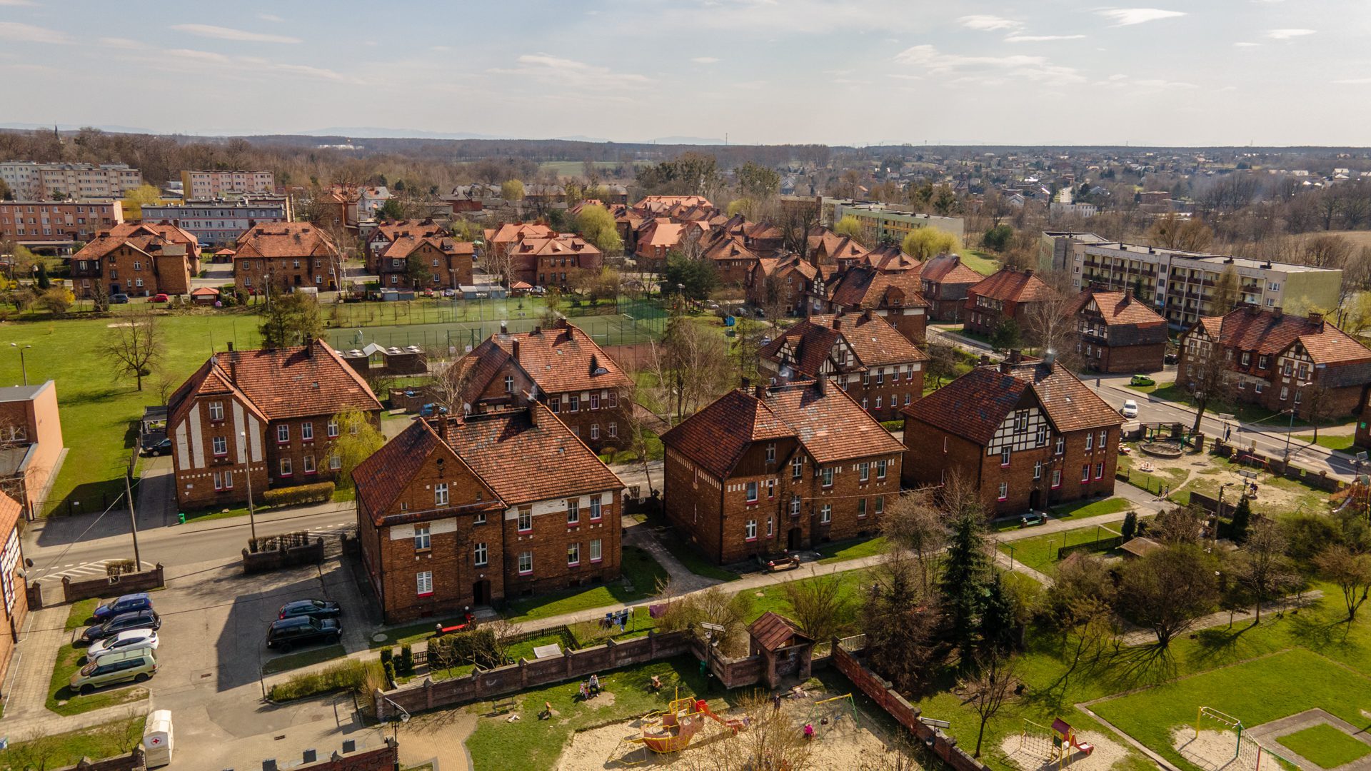 Często poznajemy je po charakterystycznej czerwonej cegle, która akurat w tym regionie kraju będzie – skądinąd słusznie – kojarzyć się z familokami [budynkami pracowniczymi, w których mieszkali górnicy – przyp. red.]. Nierzadko bywają one klockowate, zwłaszcza gdy budowano je w czasach socjalistycznych. Wiele z nich zachowało charakterystyczne oprawy okien, ale niektóre architektonicznie mają zupełnie odmienny styl. Część jest bardzo zniszczona, ale łączy je jedno – wyczuwalny od pierwszej minuty wizyty industrialny, robotniczy, najczęściej górniczy klimat. Wybraliśmy się w podróż, głównie fotograficzną, po najbardziej charakterystycznych osiedlach województwa śląskiego.
