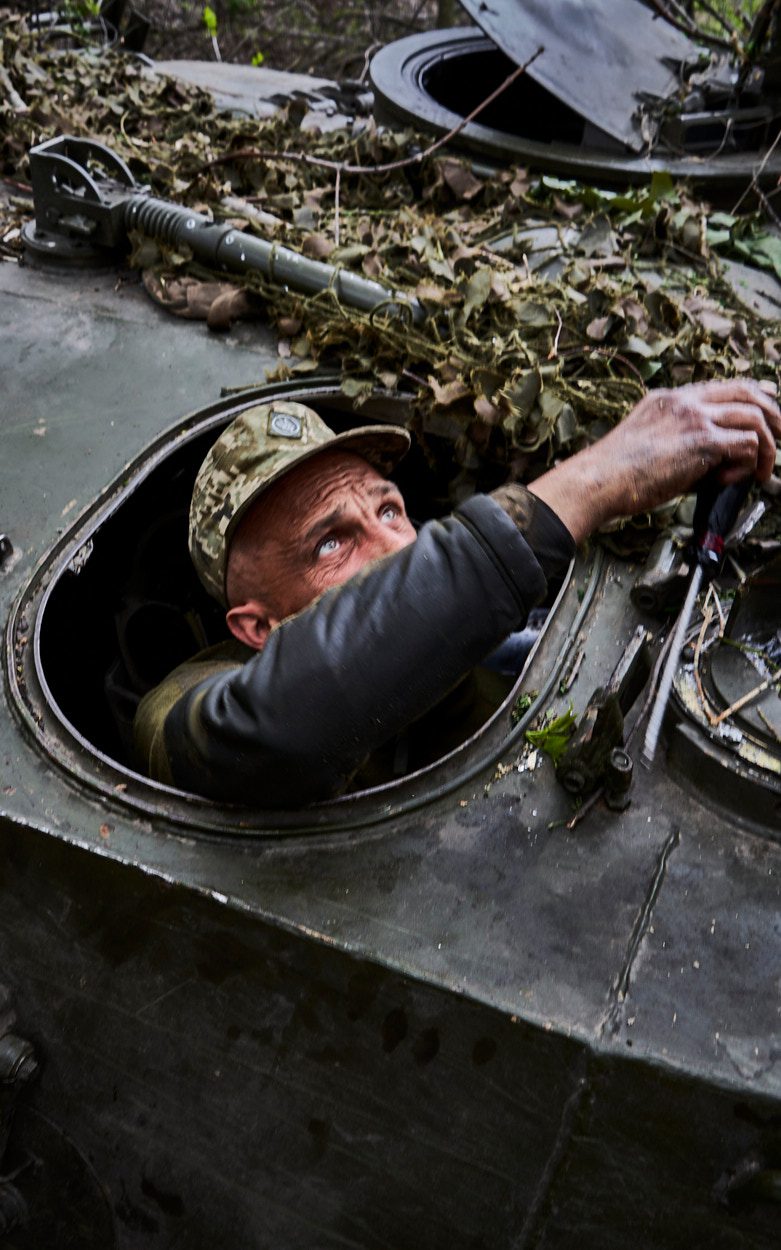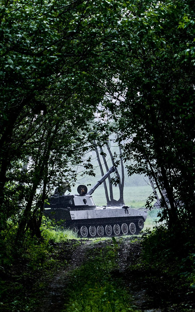 29,37 kilometra – tyle w chwili powstawania tego reportażu dzieliło Kramatorsk, tymczasową stolicę obwodu donieckiego, od linii frontu. Z 220 tysięcy mieszkańców została jedna trzecia. W opustoszałym mieście widać głównie żołnierzy. Zmierzają na front albo wracają z niego, aby chwilę odpocząć. Od wyniku zaciętych walk zależą losy Kramatorska i wschodu Ukrainy. Wojskowe ciężarówki i ciężki sprzęt codziennie gnają do położonego niedaleko Bachmutu.